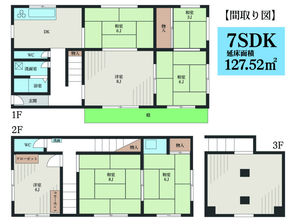 | 構造/延床面積 | 木造瓦葺3階建/127.52㎡(38.57坪) |